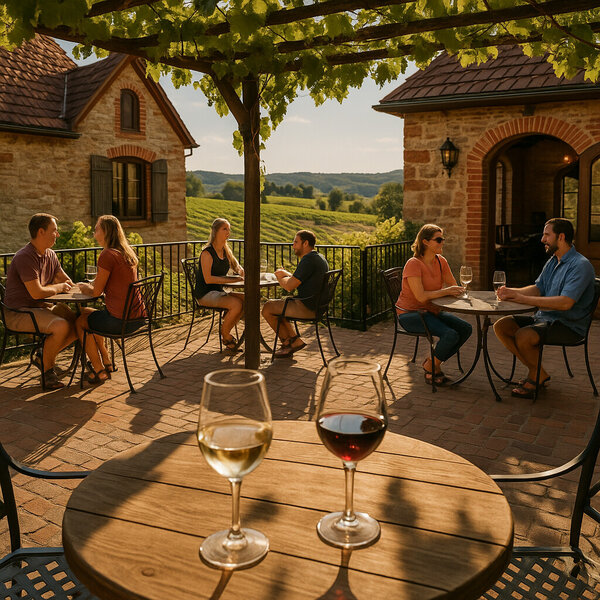 Winery patio and tasting scene in Hermann